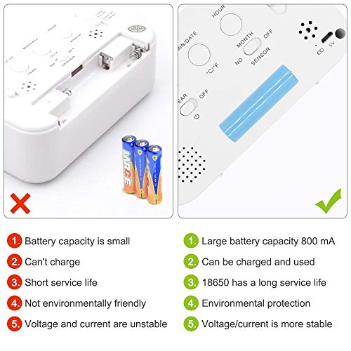 Trongle Sveglia Digitale, 5" Sveglia Digitale Ricaricabile con Soft Alram e Snooze, Visualizzazione Data e Temperatura 12/24 Ore per Bambini, per Casa e Ufficio (Bianca)