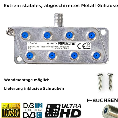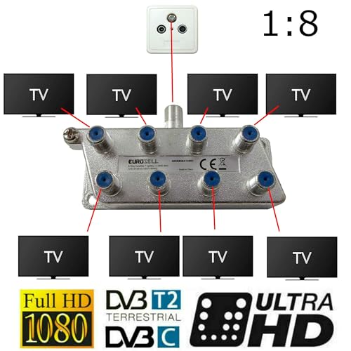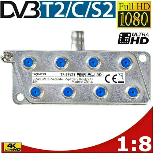 TronicXL - Cavo per antenna digitale a 8 vie, per TV BK, morbido, splitter HDTV, TV HD, switch a 8 vie, DVBC, DVBT, radio FM, Unicable 4K HDTV, 8 ingressi
