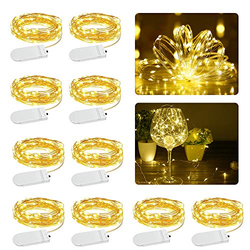 Tronisky Luci Stringa LED Batteria, Micro Catena di Luci 2M Filo di Rame con 20 LEDs, IP65 Impermeabile Decorative Luci LED Natale per Interni e Esterni, Casa, Festa, Matrimonio, 10 Pezzi