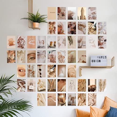 Troopic - 50 Wall Collage Kit Beige, Finitura Opaca, 10,2 x 15,2 cm e Spessore 300 gr, Room Decor Trendy Small Posters Wall Foto Aesthetic Carte Collezione di foto per dormitorio, camera da letto