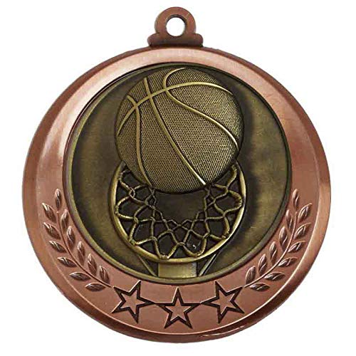Trophy Shack - Medaglia da pallacanestro singola in bronzo antico, 70 mm, con nastro a scelta e incisione gratuita fino a 60 lettere AM6030.27-M002