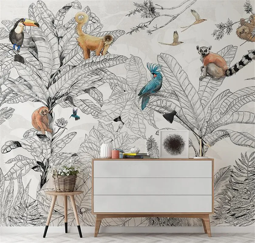 Tropical rain forest flora and Fauna living room dining room bedroom custom wallpaper mural 8D waterproof wall cloth
