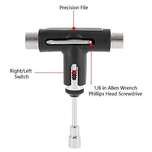 FACILE DA TRASPORTARE: Si adatta facilmente alla maggior parte delle tasche, così puoi portarlo e usarlo con te quando ne hai bisogno. Lo strumento T skateboard è leggero e facile da trasportare.