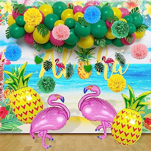 Tropicale Fenicottero Decorazioni, JORAKI Hawaii Feste con Flamingo Ananas Foil Palloncini, Verde Rosa Palloncino,Palme Foglie per Hawaii Luau Aloha Estate Spiaggia Compleanno Festa Decorazione