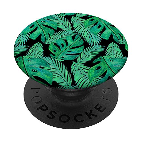 Tropicale Monstera Palma Foglia Modello Nero verde Estate PopSockets Supporto e Impugnatura per Smartphone e Tablet