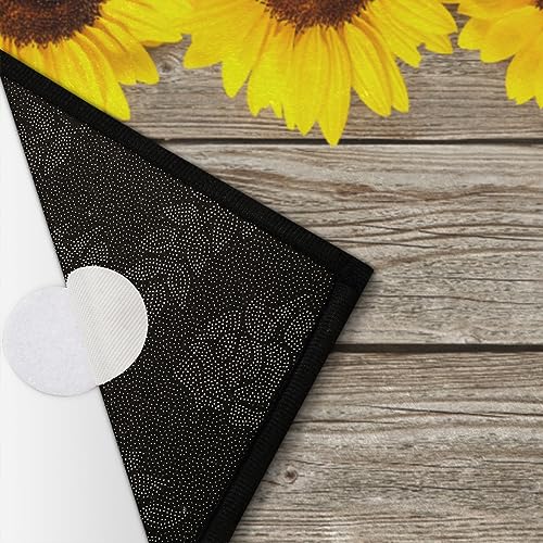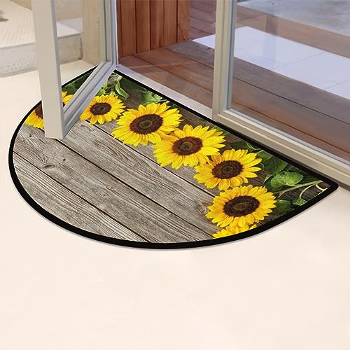 TropicalLife Zerbino semicircolare per interni ed esterni, in legno, con girasole e fiori, antiscivolo, assorbente, lavabile, semicircolare, per casa, cucina, bagno
