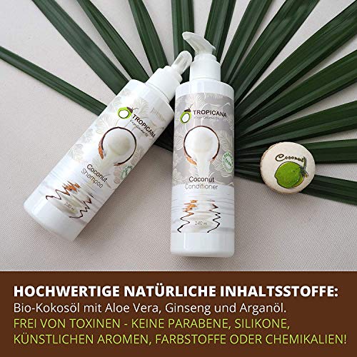Tropicana Oil Balsamo Capelli Bio 240ml - Balsamo Capelli Grassi e Secchi - Con Olio di Cocco Bio, Aloe Vera, Ginseng e Olio di Argan