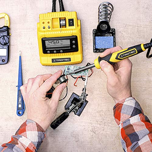 TROTEC Stazione di saldatura digitale PSIS 10-230V Stazione di saldatura a temperatura controllata da 60 watt (200-450 °C) - incluse 3 punte di saldatura e 2 rulli di stagno per saldatura