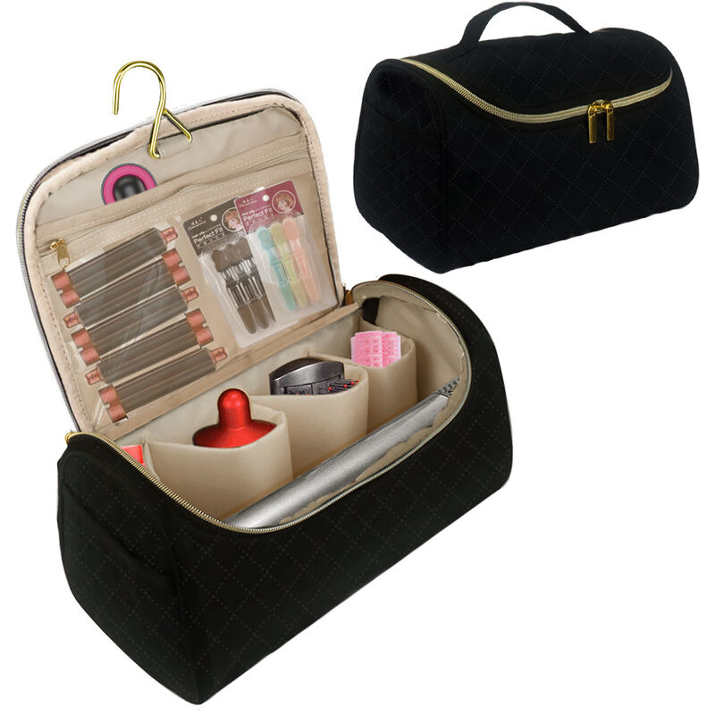 Il tessuto pelle di pesca e l'interno morbido e imbottito proteggono il tuo ferro arricciacapelli e asciugacapelli preferito da urti, graffi e altri danni fisici. All-in-one: scomparto principale con 4 slot imbottiti singolarmente e 2 tasche laterali per articoli compatibili con penna Dyson Airwrap completa, vassoio Airwrap, spazzole, asciugacapelli pretagliato e altri accessori. Pulito e organizzato: 1 tasca trasparente con cerniera e 1 tasca aperta per oli da parrucchiere, fermagli per capelli, lacca per capelli o altri accessori per arricciare. Design intelligente: gancio girevole antiscivolo a 360° per appenderlo facilmente pareti, comuni maniglie delle porte o persino tavoli. Quando non ti serve, puoi nasconderlo.