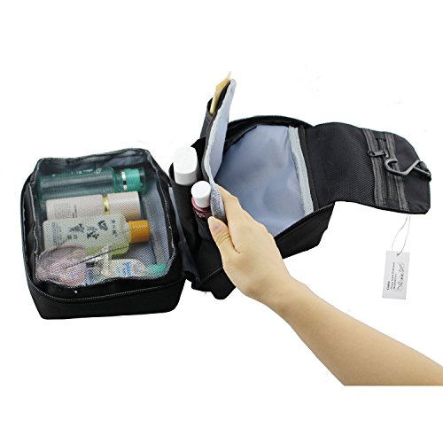 Trousse pieghevole multiuso, in nylon, impermeabile, con gancio per appenderla, per uomo e donna, per cosmetici, trucchi, biancheria, da portare in viaggio o in campeggio, nero