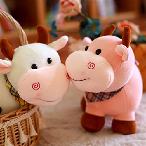 TROYSINC Mucche di peluche con sciarpa, morbido peluche circa 28 cm, simpatico cuscino dei cartoni animati, regali creativi per adulti e bambini (bianco)