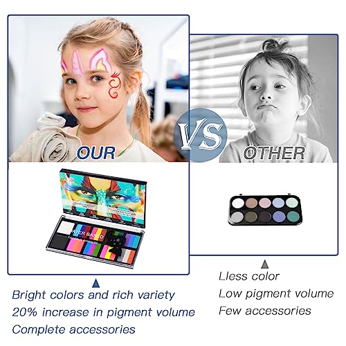ADATTO PER OGNI OCCASIONE: Adatto a tutti i tipi di feste e festival, questa vernice per il corpo è il regalo perfetto. Che sia Natale, Halloween o Mardi Gras, ti divertirai di più con il nostro kit trucco professionale per bambini!