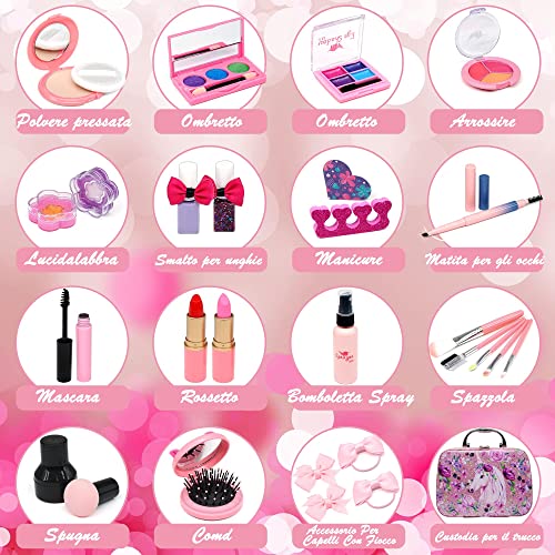 Trucchi Bambina Set da trucco per bambine - 27 pezzi valigetta trucchi bambinaregali di trucco sicuri e valigia trucchi bambina,regali di compleanno di Natale per ragazze di 4 5 6 7 8 9 10 anni.