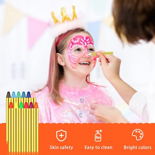 [Salute e sicurezza] Adatto a bambini e adulti di tutte le età. La pittura del viso per bambini è realizzata con paraffina di alta qualità, non tossica, delicata sulla pelle e sicura da usare;