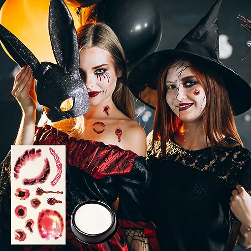 Kit Trucco Halloween, Trucchi Halloween, Palette di Trucco da 6 Colori + Palette di Trucco da 3 Colori + Sangue Finto + Adesivi Per Cicatrici di Halloween + Colori Per il Trucco (Rosso, Grigio)