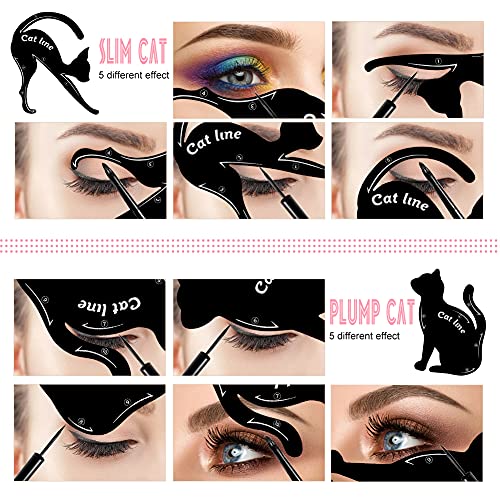 2 tipi di stampi per eyeliner: i 2 stampi per eyeliner per gatti con 10 forme diverse sono realizzati in morbido silicone, che sono riutilizzabili, è possibile scegliere lo stampo ideale che corrisponde all'aspetto dei tuoi occhi naturali. Si prega di tenere le mani stabili quando si applica il trucco degli occhi.