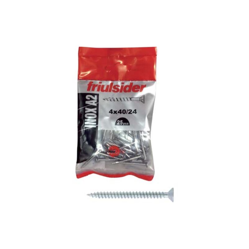 Vite truciolare tsp inox a2 self friulsider (10 confezioni) Cava pz filetto intero mm 5,0x50 cf=pz 25 a testa piana svasata, in acciaio inox a2, en 14592, zincata e verniciata. interamente filettata. con impronta torx. in blister.