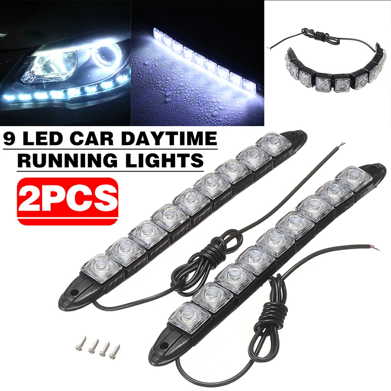 2pcs 12V 6W Car Auto Truck 9 LED Flexible Day-time Running Light Waterproof Super Bright Fog Warning Parking Lamp 650LM Parts