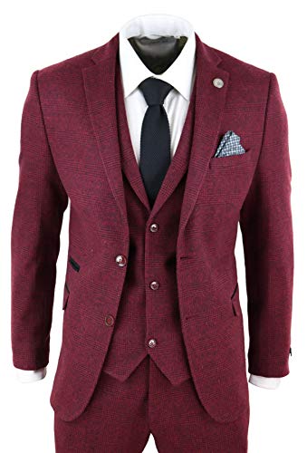 TruClothing.com Abito Elegante 3 Pezzi da Uomo Completo Vintage in Tweed Bordeaux a Scacchi Bordeaux 36UK, 46IT