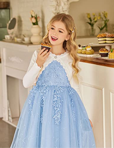 Questa maglia mantiene le spalle calde ed è un complemento perfetto per un abito da festa, se il tempo è imprevedibile. o per la scuola, per il matrimonio come damigella d'onore o per la comunione.
