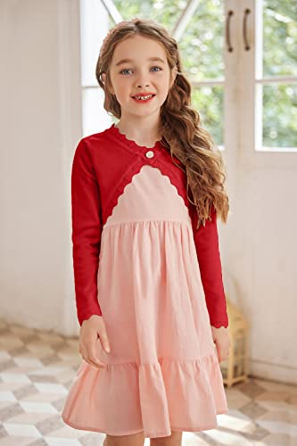 Trudge Basic Bolero - Giacca a maniche lunghe, da bambina, per battesimo, colore: bianco / blu navy / nero / rosa / rosso Colore: rosso 140 cm