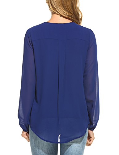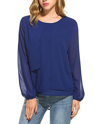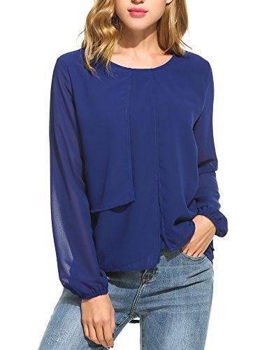 Stile classico - Silhouette rilassata, piacevole e traspirante, mentre la luce anteriore ruffata e lo strato in chiffon rendono questa semplice camicia alla moda senza tempo, che ti rende elegante e classico