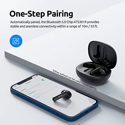 [Chiamate Crystal Clear] Ogni auricolare è dotato di 2 microfoni, insieme i 4 microfoni avanzati forniscono chiamate con cancellazione del rumore. Anche nelle stazioni della metropolitana o nelle strade rumorose, gli auricolari true wireless Truefree T1 possono fornire chiamate chiare e stabili, conversazioni straordinarie come la musica.