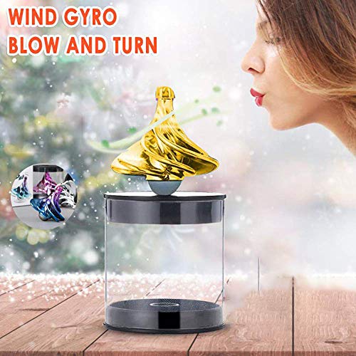 TRUEGOOD Trottola, giroscopio a Vento, Soffio a Vento Girare giroscopi Giocattoli di decompressione Desktop, giroscopio a Flusso d'Aria, giroscopio da Tavolo, Giocattolo Antistress (Gold)