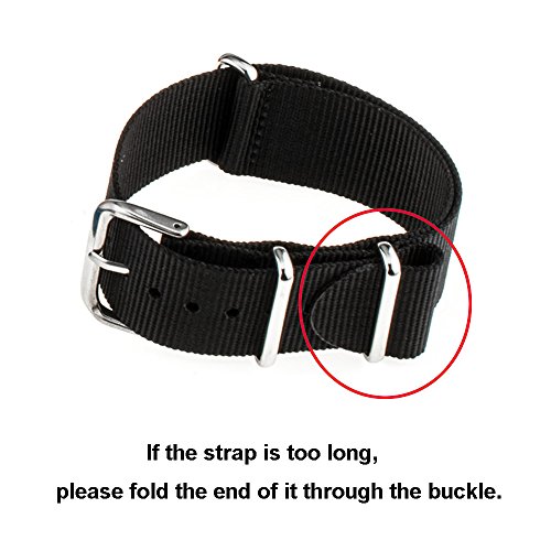 GARANTITA FIT: Misura per uomini e donne, e regolabile per il polso individuale. 10.5 pollici di lunghezza, questo cinturino si adatta ai polsi da 5 a 8 pollici, che copre il 95% della popolazione, se siete in un altro 5%, faremo felicemente rimborseremo il vostro acquisto, senza fare domande! Fare clic sul pulsante Aggiungi al carrello ora per assicurarsi di ricevere il meglio di nylon NATO cinturino su Amazon.