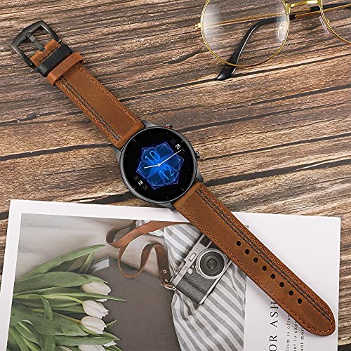TRUMiRR Compatibile con Amazfit GTR 3 Pro/GTR 2e Cinturino in pelle, 22mm Cinturino per orologio in vera pelle a doppio colore Cinturino sostitutivo per Amazfit GTR 2e/GTR 2/GTR 47mm