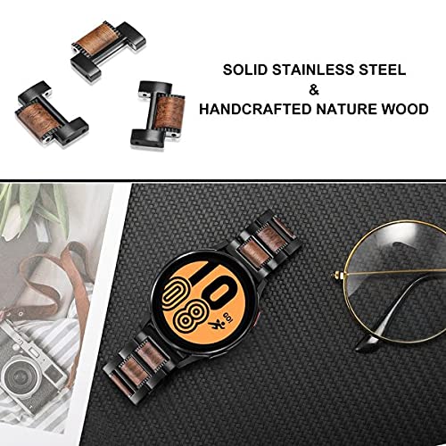 TRUMiRR Compatibile con Samsung Galaxy Watch 42mm/Watch 3 41mm/Active 2 40mm 44mm Cinturino, 20mm Acciaio inossidabile & Cinturino in noce naturale per Garmin Vivoactive 3/Venu/Venu Sq