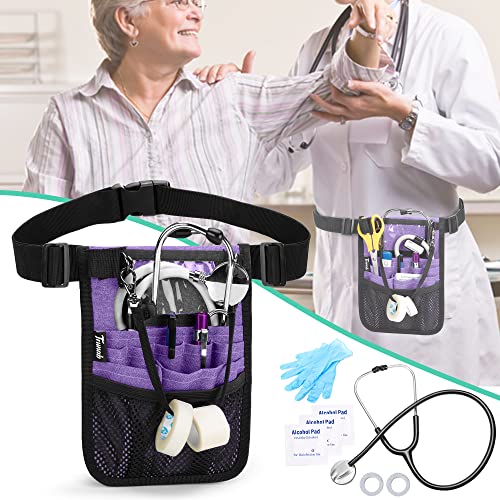 Trunab Marsupio Infermiera con Supporto per Nastro Medico e Scomparti Multipli, Organizer per Cintura per Stetoscopi con Cintura Regolabile, Adatto per Forbici, Garza e Altre Forniture Mediche, Viola
