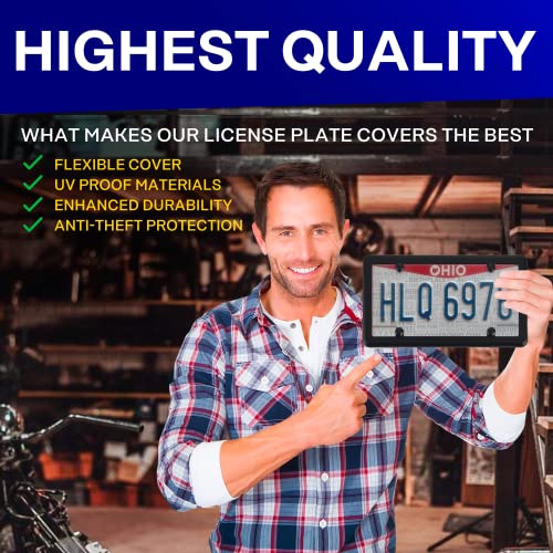 TrunkNets 2 Unbreakable Clear License Plate Shield Cover + 2 Black Frames + 8 Black Screw Caps by
