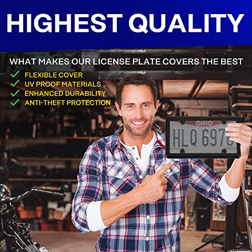 TrunkNets 2 Unbreakable Tinted Smoke License Plate Shield Cover + 2 Black Frames + 8 Black Screw Caps by