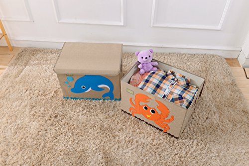 TruReey, grande cassapanca per bambini, con coperchio, contenitore per giocattoli pieghevole e robusto Dolphin