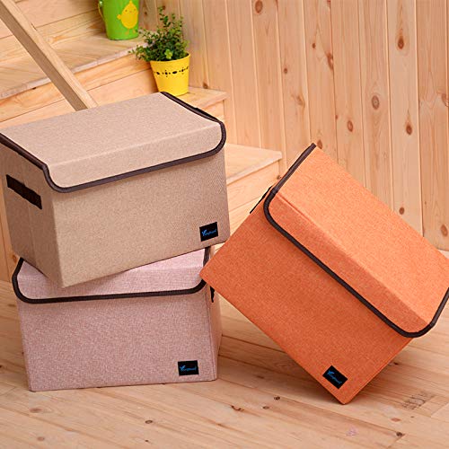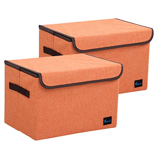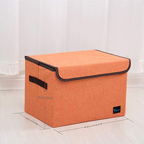TruReey - Scatola portaoggetti con coperchio, in tessuto, pieghevole, per armadio, libri, scarpe, giocattoli, colore: arancione