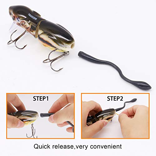 Sia che tu stia pescando luccio, spigola, muschiato o pesce gatto, l'anatra snodata 3D Truscend è progettata con un gancio superiore e inferiore, in modo che i pescatori possano personalizzare la loro presentazione per adattarsi alle condizioni.