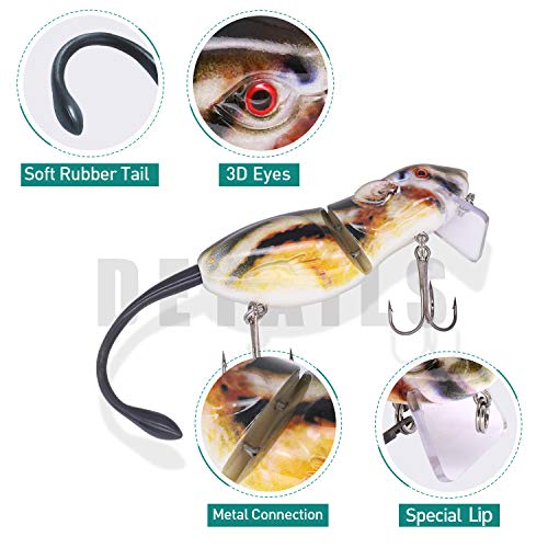 Esche realistiche per il mouse: lunghezza: 5,8 cm, peso: 9,9 g, queste esche per basso sono fatte per sembrare pesci realistici che si muovono attraverso l'acqua.
