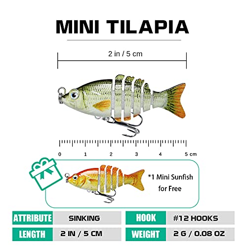 Mini esche da pesca a 6 segmenti: disponibili in lunghezze da 5 cm, con esche da pesca TrUSCEND e flessibili in acqua. Inoltre, le azioni di nuoto simili a quelle rendono attrarre più catture e provocando pesci predatori a colpire.