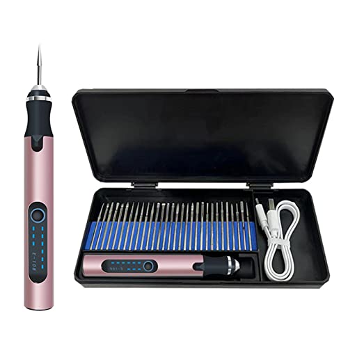 TrusMe Penna elettrica per incisione senza fili, con USB ricaricabile fai da te, con 30 bit, penna micro incisore per legno, uovo, pietra di metallo, oro rosa