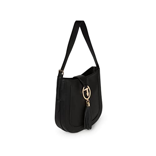 Trussardi Borsa SOTTOSPALLA 75B01172 in Ecopelle Colore Nero con Logo Charms E Frangia