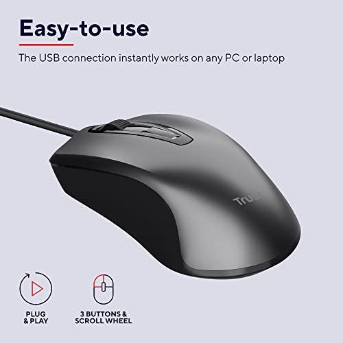 Trust Carve Mouse USB con Filo (3 Pulsanti e Rotella per lo Scrolling, 1200 DPI, Adatto a Utenti Sia Destri che Mancini, PC Portatile/Computer) Nero