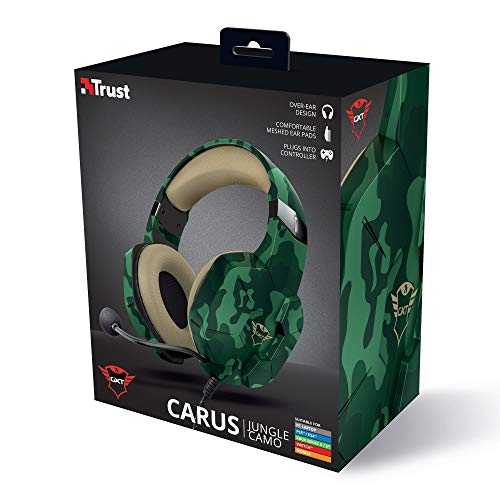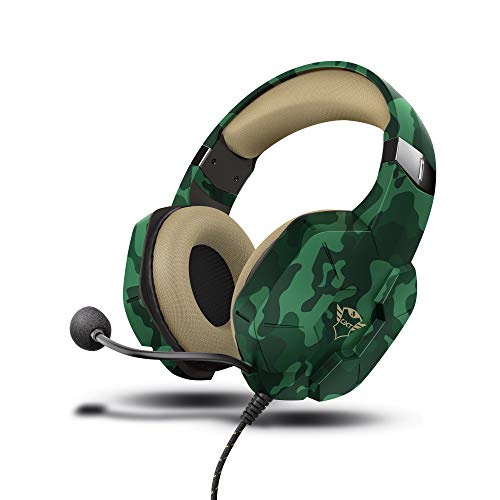 Trust Gaming Cuffie PC, PS4, PS5, PlayStation 4/5, Xbox Series X/S GXT 323C Carus con Microfono Flessibile, 3.5 mm Jack, Filo, Controllo del Volume ed Esclusione Audio del Microfono - Verde Mimetico