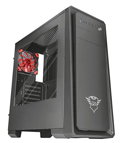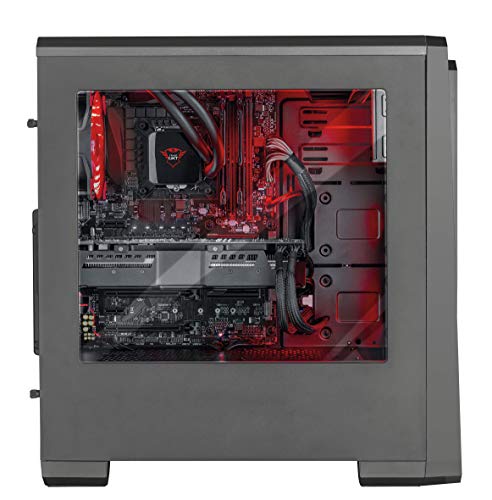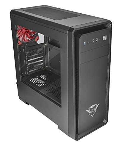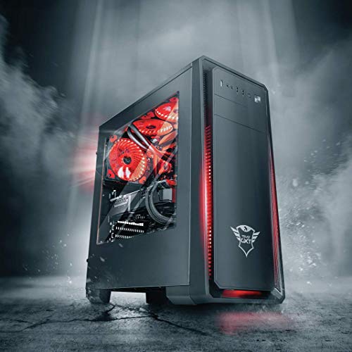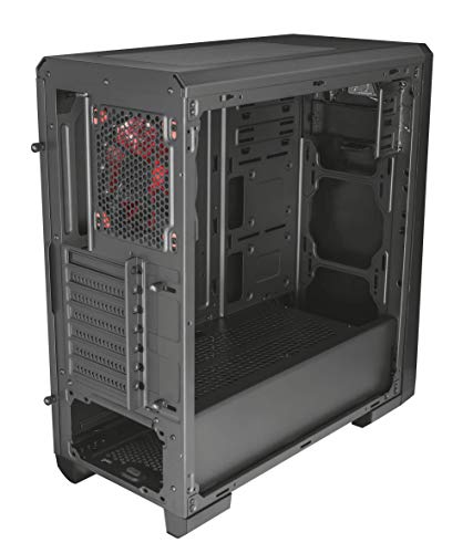 Inclusa una ventola di raffreddamento posteriore illuminata in rosso da 120 mm. 7 slot di espansione PCIe, 1 alloggiamento DVD, fino a 5 alloggiamenti disco senza utensile