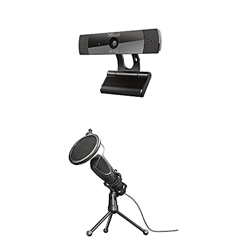 Trust Gaming GXT 232 Mantis Microfono USB per Streaming, Shock-Mount, Filtro Pop e Treppiede, Microfono - Nero & Gxt 1160 Vero Webcam Full Hd 1080P Con Microfono Integrato, Nero