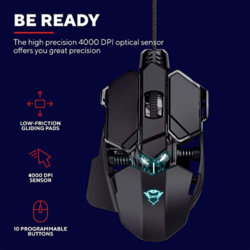 Trust Gaming Mouse Gaming GXT 138 X-Ray, Sensore Ottico 4000 DPI, 10 Pulsanti Programmabili, Illuminazione RGB Personalizzabile, Nero