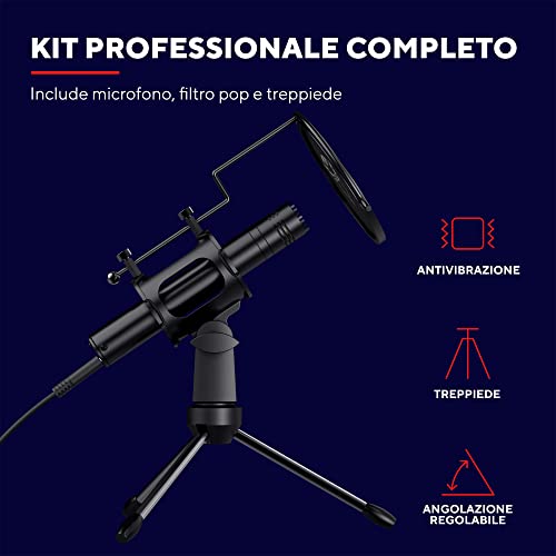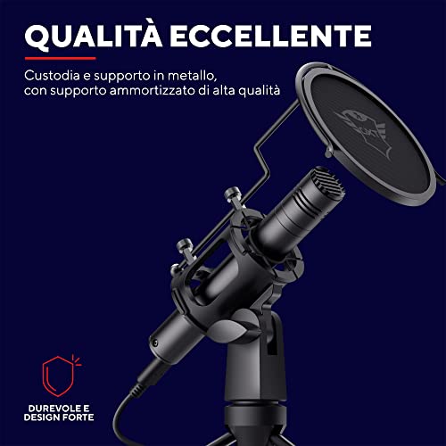 Trust Gaming GXT 241 Velica Microfono Streaming USB con Treppiede e Filtro Pop, Microfono a Condensatore per Canto, Podcast, Streaming, Voce, YouTube, Twitch, PC/Laptop