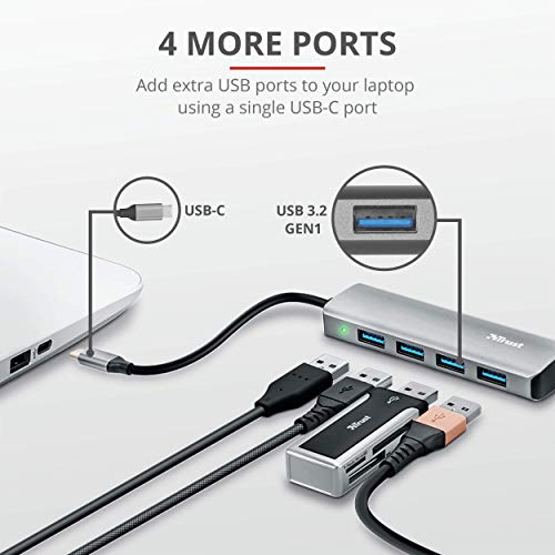 Trust Halyx Hub da USB-C a USB-A 3.2 Gen1, 4 Porte, Grigio