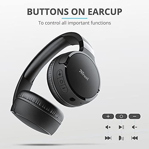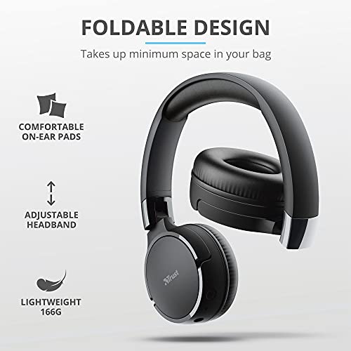 Trust Mobile Zena Cuffie Wireless On-Ear, Batteria Fino a 75 Ore, Bluetooth 5.0, Ripiegabile, con Microfono, Portata 10 m - Nero, Unisex