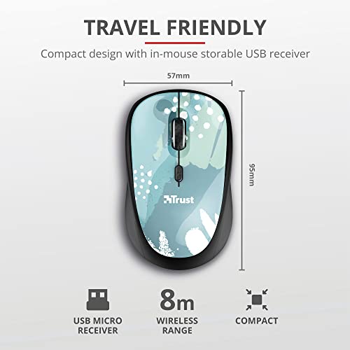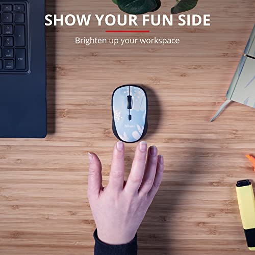 Trust Yvi Mouse Wireless, Mouse Senza Filo, 800/1600 DPI, Ottico, 8m di Portata Wireless, Microricevitore USB Riponibile, Ambidestro, PC/Laptop/Portatile/Mac/Chromebook - Blu